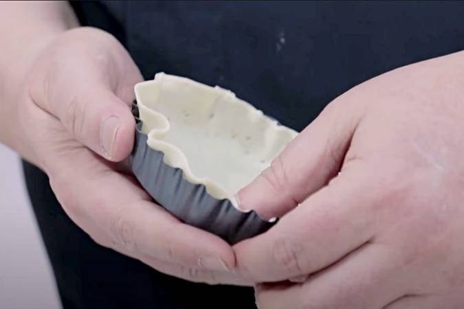 - Hornear las tartaletasSi os animáis a hacer las tartaletas, tenéis que poner las obleas en unos moldes individuales, procurando que queden bien ajustadas. Las pinchamos ligeramente en el fondo con un tenedor y las horneamos a 180ºC, con calor arriba y abajo, durante 8 minutos. Una vez hechas, las dejamos enfriar un poco y las desmoldamos.