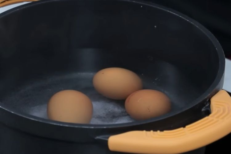 - Cocemos los huevosEl primer paso será cocer los huevos en agua con sal. Una vez que rompa el agua a hervir, son 12 minutos. Después los dejaremos enfriar a temperatura ambiente.