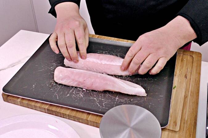 - Comenzamos limpiando el pescadoLo mejor es que en la pescadería pidamos que nos limpien bien la merluza y nos hagan dos filetes quitando todas las espinas. Luego en casa ya repasaremos bien para intentar que no tenía ni una sola espina cuando la cocinemos.