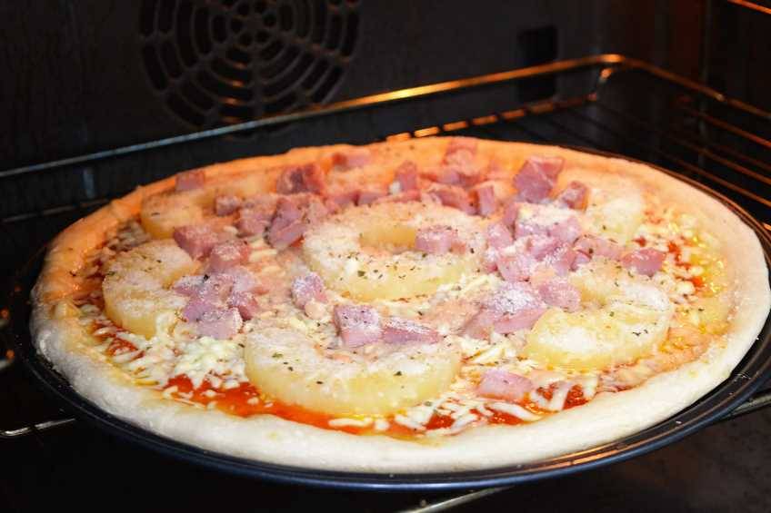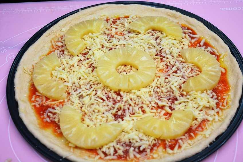Pizza con piña o pizza hawaiana con masa casera