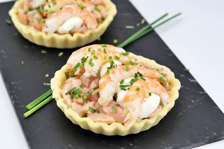Tartaletas de salmón marinado con aguacate y gambas receta de Javier Romero