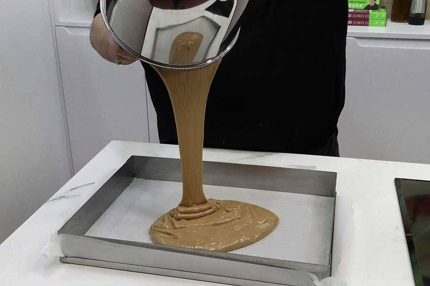 Una vez esté todo integrado, engrasamos el molde con spray desmoldante (o untado en mantequilla y harina espolvoreada en su defecto) y después volcamos todo el contenido del bol en su interior, procurando que quede lo más uniformemente repartido posible.