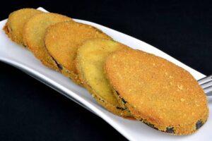 Berenjenas a la milanesa. Una forma muy sencilla de cocinar la berenjena. La milanesa consiste en empanar con queso en polvo y pan. Una delicia.