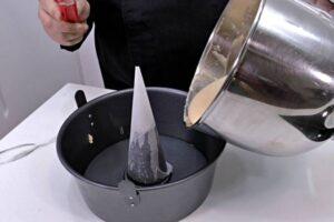 Esperar a que se enfríe el bizcocho y desmoldarloPasado ese tiempo, pincharemos el bizcocho de mantequilla con una aguja para ver si está terminado. Si la aguja sale limpia, podremos retirarlo definitivamente y esperar a que se enfríe un poco para desmoldarlo, y a que lo haga por completo para comerlo.