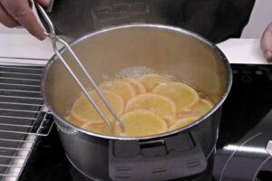 Preparar la naranja confitadaAntes de preparar el brownie, tenemos que confitar la naranja. Para ello os voy a dejar el enlace a la receta que ya tengo publicada y que podéis ver PULSANDO AQUÍ. Una vez confitada, la escurimos bien para que se seque.