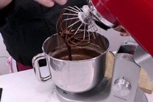 Añadir el chocolateUna vez tengamos los huevos y el azúcar integrados, sea de la forma que sea, añadimos el chocolate y lo mezclamos despacio.