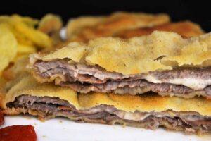 Servimos y disfrutamosUna vez frito, solo tenemos que acompañarlo de unas patatas fritas y unos pimientos del piquillo asados o pimientos verdes fritos para rematar el plato. Ya hemos terminado nuestro cachopo asturiano. Un plato que me enloquece como a cualquier amante de la carne y más específicamente la carne roja. Nos vemos en la próxima receta que será mañana y aquí, en Cocina Familiar.