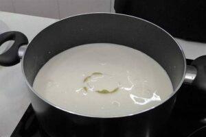 Infusionamos la lecheMientras se va cociendo el arroz, cogemos otra cazuela y ponemos leche, leche evaporada y la cáscara de limón para que se vaya calentando y la leche adquiera el sabor del limón.