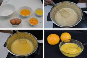 Agregamos zumo de naranja y continuamos batiendo hasta que tenga la textura deseadaFinalmente añadimos el zumo de naranja y continuamos con el batido hasta que quede con una textura más espesa. Yo estuve unos 25 minutos batiendo, pero esto no es indicativo del tiempo que tarda en hacerse la crema inglesa de naranja.