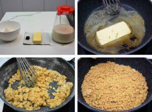 Preparamos la masa para croquetasVamos a empezar a hacer la masa para croquetas. En una sartén o cazuela ponemos a fundir la mantequilla. Cuando lo haya hecho, añadimos la harina con un puñadito de sal y la cocinamos durante unos minutos para que pierda el sabor a harina. Seguiremos trabajándola hasta que quede más suelta.