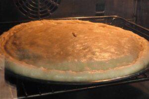 Metemos la empanada en el horno a 180º durante 25 minutosEncendemos el horno a 180 grados con calor arriba y abajo SIN ventilador y cuando esté caliente, metemos la empanada de carne durante 25 minutos más o menos.