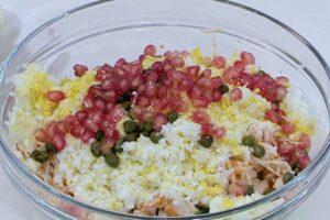 Añadir el huevo y las alcaparrasPelamos los huevos, los lavamos un poco y luego los rallamos en el bol. Acto seguido agregamos las alcaparras.