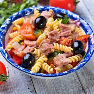 Una ensalada de pasta y atún nos permite jugar cada vez que la hacemos. Con esta base, podemos añadir diferentes ingredientes a nuestro gusto.