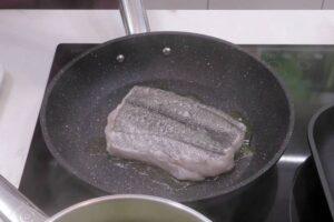 Cocinar la merluzaLa merluza hay que marcarla en la plancha y a ser posible en una sartén que podamos meter al horno ya sea porque tiene el mango metálico o extraíble. Pondremos un chorrito de aceite de oliva en la sartén, sazonaremos la merluza y la cocinaremos en la plancha durante 2 minutos por cada lado. Posteriormente, encenderemos el horno a 180 grados con calor arriba y abajo y en que esté caliente meteremos la sartén durante 12 minutos. El tiempo es relativo, en este caso es una tajada gruesa y por eso necesita 12 minutos. El tiempo lo marcará el grosor de las tajadas. En caso de que hagáis más de una ración, a menos que dispongáis de una sartén muy grande, tendréis que poner las tajadas en una fuente.