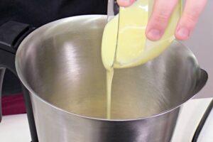 Juntamos la nata con la leche condensadaA continuación, pasamos a la jarra del robot y agregamos la leche condensada y la nata líquida para montar.