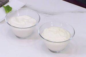 Mezclamos convenientementeColocamos la tapa de la jarra y programamos el robot a 2 minutos, velocidad 3. Pasado ese tiempo, obtendremos como resultado una especie de crema con textura de yogur griego.