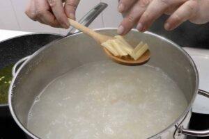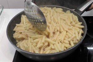 Comenzamos cociendo la pastaComenzaremos cociendo la pasta en abundante agua. Cuando esté hirviendo, ponemos una cucharada sopera de sal y cocemos la pasta el tiempo recomendado por el fabricante desde ese momento. Antes de llegar al tiempo recomendado, vete comprobando para dejarla a tu gusto.