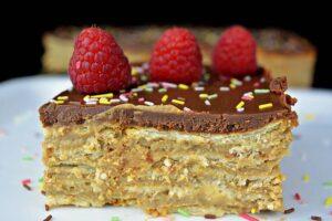 Receta para hacer tarta de la abuela casera. Un postre casero de los de toda la vida. Galletas, crema y cobertura de chocolate son sus protagonistas.