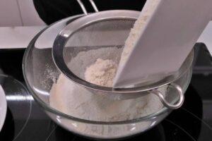 Preparamos la harinaCon un colador vamos a tamizar la harina junto a la levadura química en polvo para eliminar la posibilidad de tener grumos.