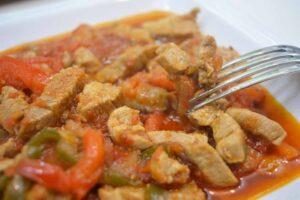 Receta de solomillo de cerdo guisado con verduras. Con esta receta conseguimos que el solomillo resulte más jugoso gracias a la salsa y las verduras.