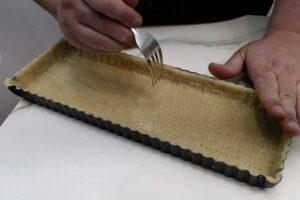 Pinchamos la superficie interior de la masaA continuación, pinchamos con un tenedor toda la superficie interior de la masa.