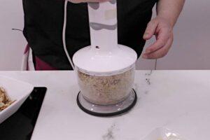 Preparamos la base para la tartaComenzamos pulverizando las galletas y las nueces con la batidora y el accesorio que viene para picar. Luego fundimos la mantequilla un poco en el microondas, controlando que no sea demasiado.